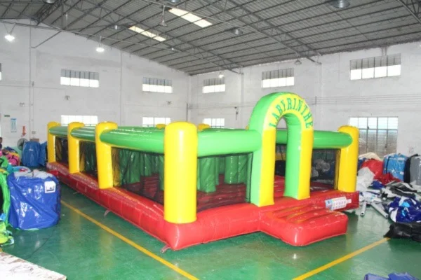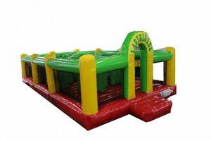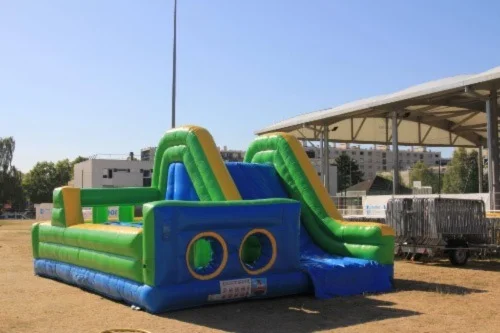 Le parcours aventure est une structure gonflable très sécurisée composée de tunnels, toboggan, d’obstacles divers et d’un mur d’escalade.