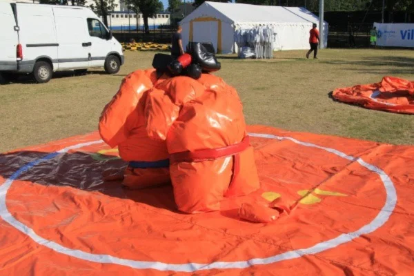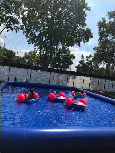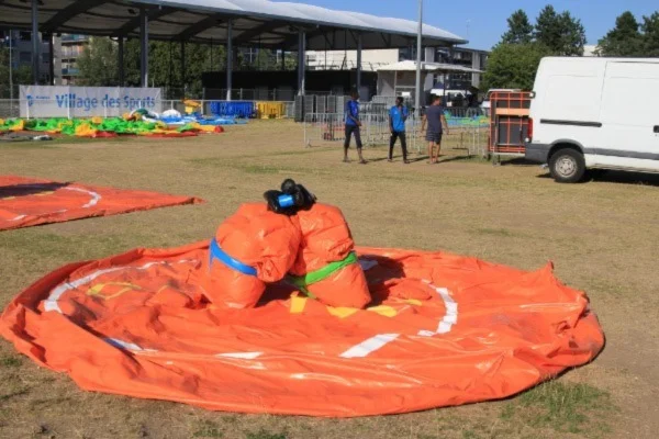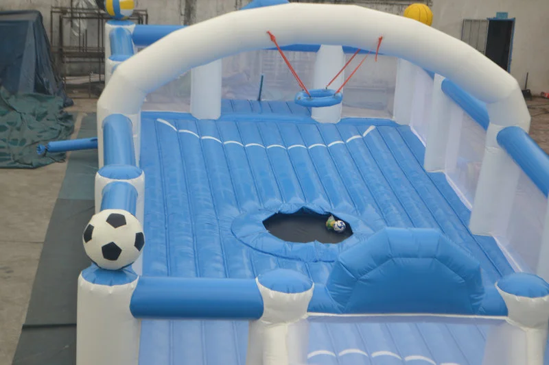 Il s’agit d’une structure gonflable réunissant plusieurs sport comme le foot, le volley, le hand et le basket.